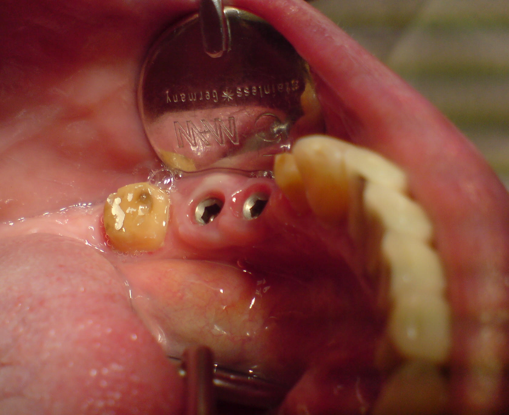 Zustand nach Freilegung und Ausheilung der Implantate |